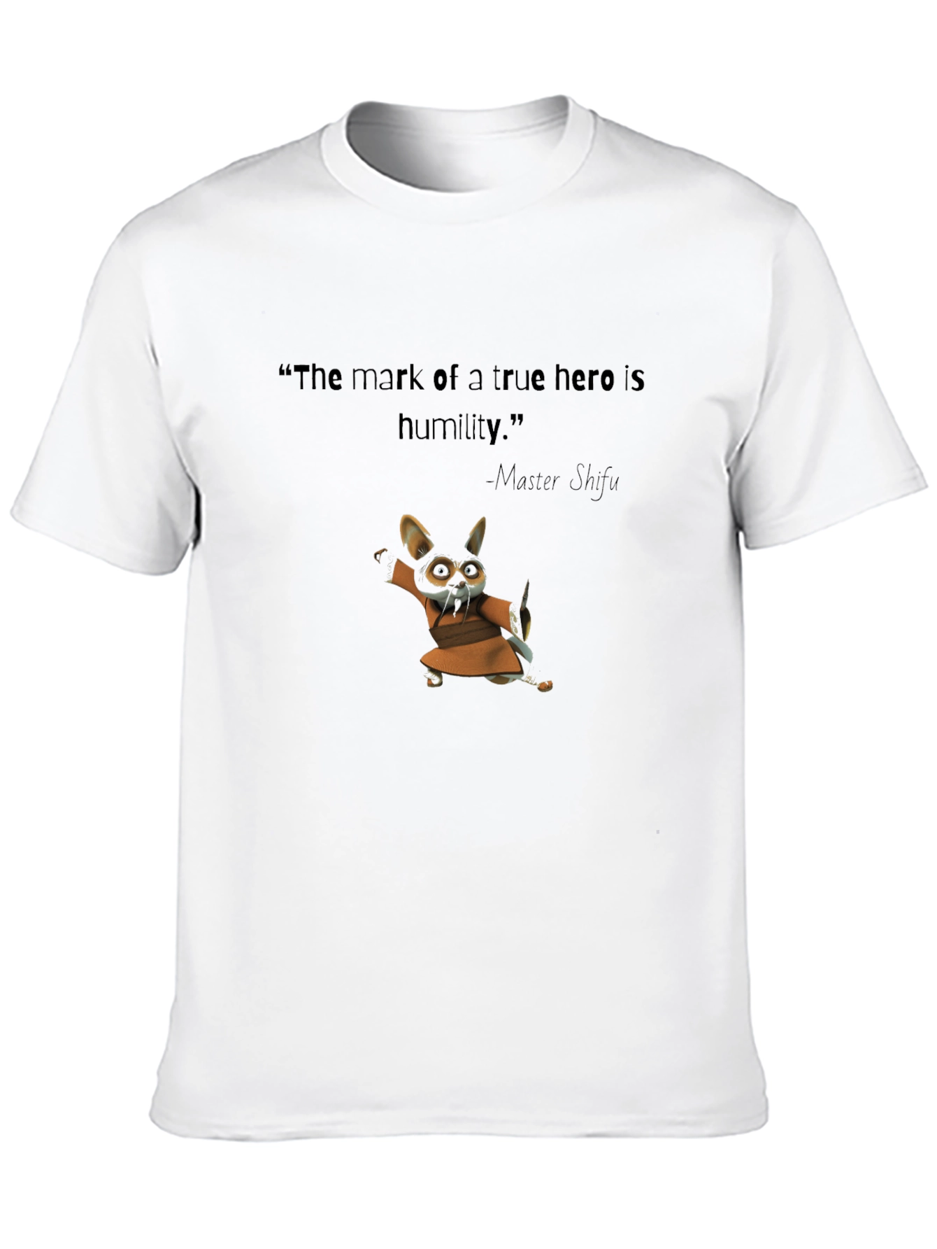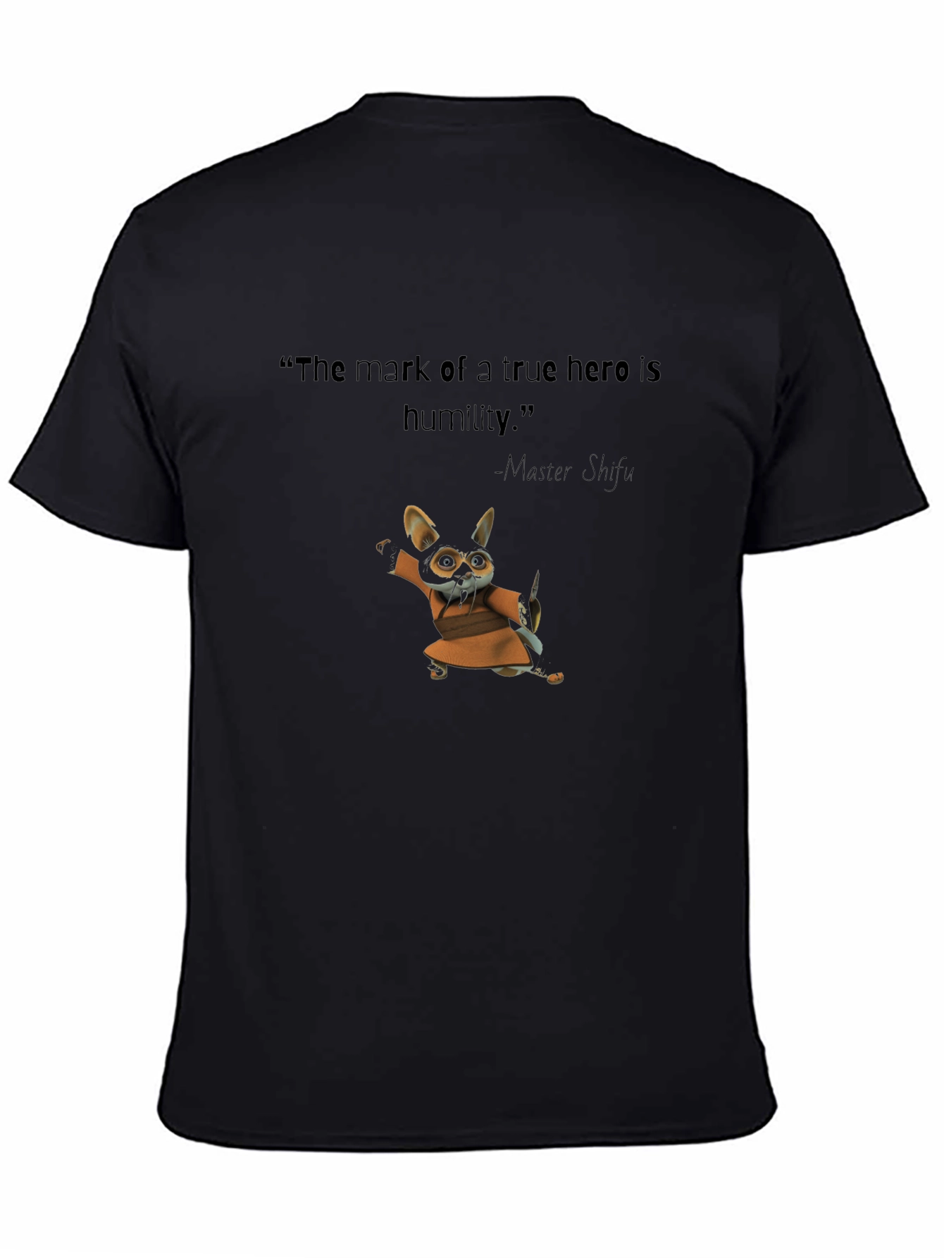 Showcase your wisdom with this black graphic t-shirt featuring Master Shifu. The shirt displays a quote about humility and is a great statement piece. Made from a comfortable fabric, this tee is soft and breathable, perfect for everyday wear. The classic cut ensures a relaxed fit, making it suitable for various casual settings. Whether you're running errands, hanging out with friends, or simply relaxing at home, this t-shirt will keep you comfortable and stylish. It's a great addition to any wardrobe!
